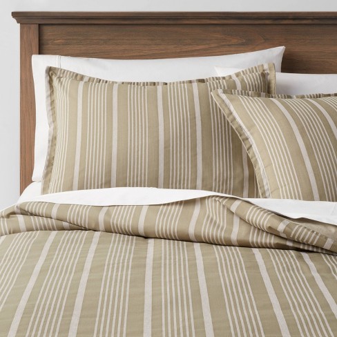 Full Queen Classic Stripe Duvet Cover Sham Set Olive Green White Threshold Target